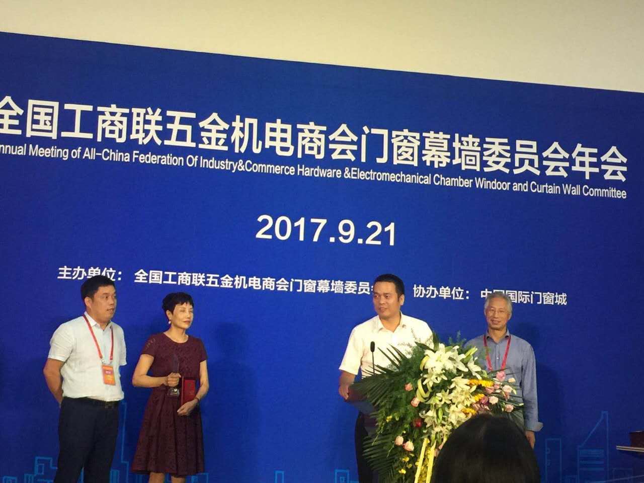 標題:連云港市門窗協會會長、江蘇美好門業科技有限公司董事長潘國柱,出席“全國工商聯五金機電商會門窗幕墻委員會年會”