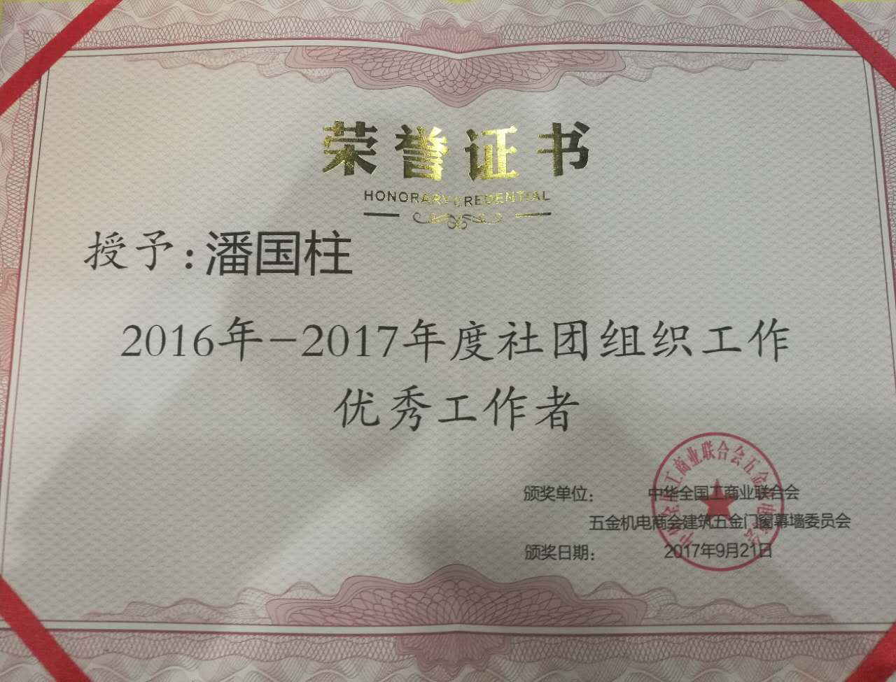 江蘇美好門業科技發展有限公司董事長潘國柱先生榮獲證書