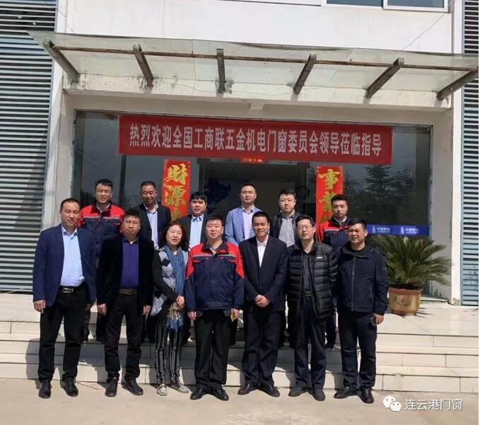 江蘇美好門業科技發展有限公司董事長、連云港市門窗協會會長潘國柱陪同全國工商聯五金機電商會領導走訪會員企業