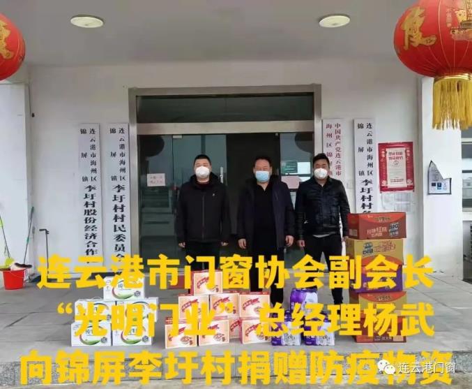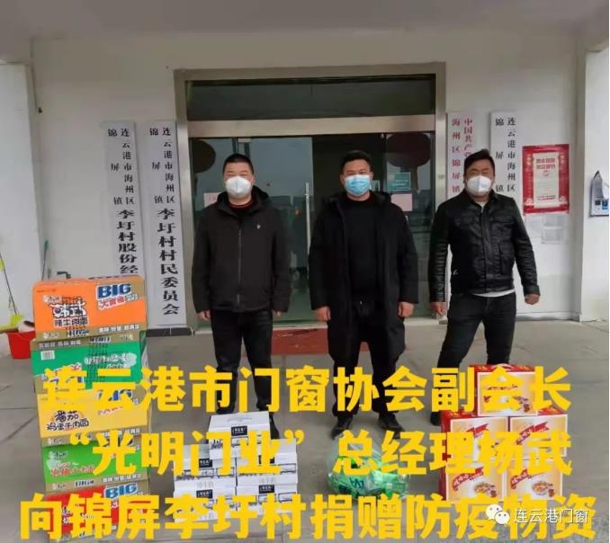 ? ? ?連云港市門窗協(xié)會副會長(光明門業(yè)總經理)楊武為錦屏鎮(zhèn)李圩村先后兩次捐贈現金和防疫物資,累計5000元。