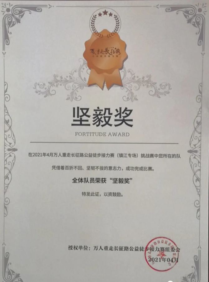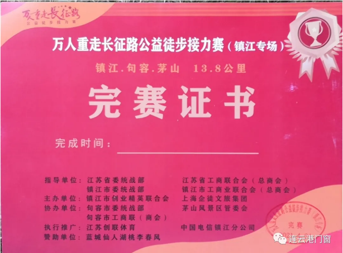 ? ?經過兩小時的徒步,連云港市門窗協會代表隊-“長征隊”最終以小組第四的好成績順利完成賽事,并榮獲“堅毅獎”。