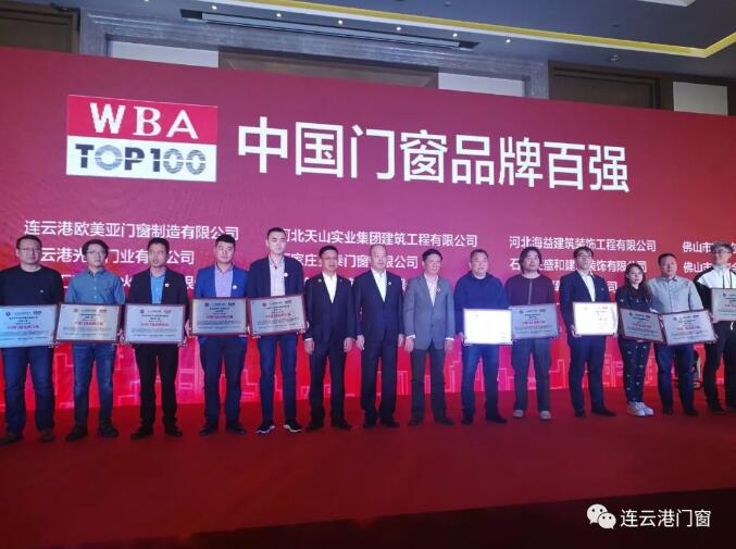 連云港市門窗協會會員企業喜獲“中國門窗品牌百強”大獎
