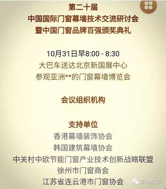 本屆研討會頒獎盛典中“連云港市門窗協會”共六家會員企業榮獲“中國門窗品牌百強”大獎。